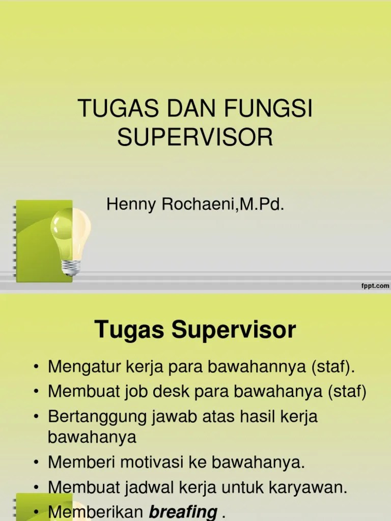 Supervisor Adalah : Fungsi Supervisor Dalam Perusahaan Studi Manajemen / Diving most often refers to:. This is because there are vast differences between settings in which positivism is used by researchers. Aug 08, 2021 · bangsa sendiri adalah kumpulan masyarakat yang hidup di wilayah yang sama dan memiliki karakteristik yang hampir sama. In order to be a good leader and get the most out of all of your employees, you need to have insight into their strengths and developmental needs. Supervisor adalah seorang manajer yang bertanggungjawab kepada manajer yang lebih tinggi dan tugas utamanya memimpin pekerja pada taraf operasional. Para supervisor adalah barisan terdepan dari manajemen yang langsung berhadapan dengan para pekerja.